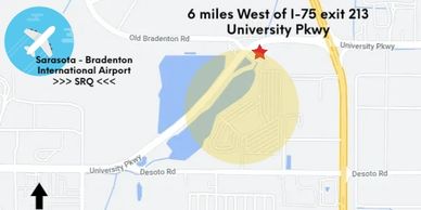 We are located at 1674 University Parkway between U.S. 301 and U.S. 41 (Tamiami Trail), near the Sarasota-Bradenton Airport. Just minutes from many Sarasota and Bradenton attractions - the beautiful Gulf of Mexico beaches, Ringling Museum and downtown Sarasota.